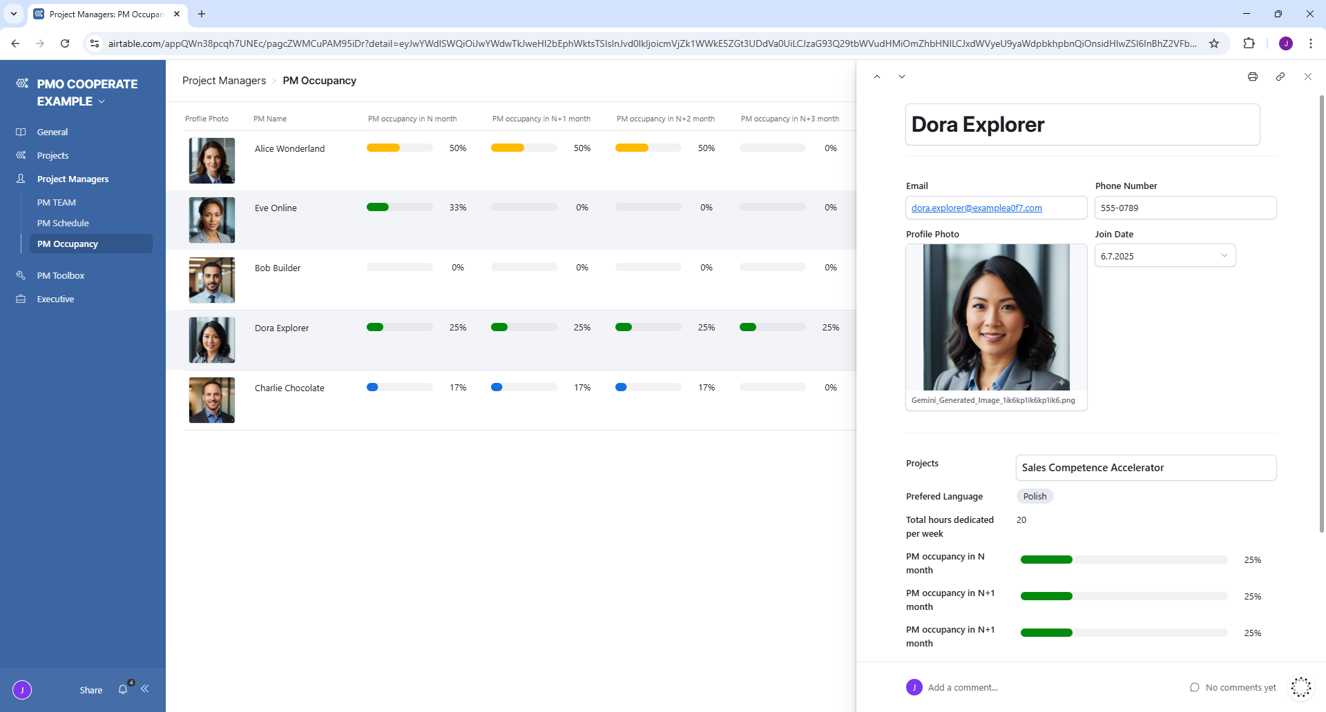 - With a help of Ai assistant you’ll be able to develop your team competencies based on their engagement in projects