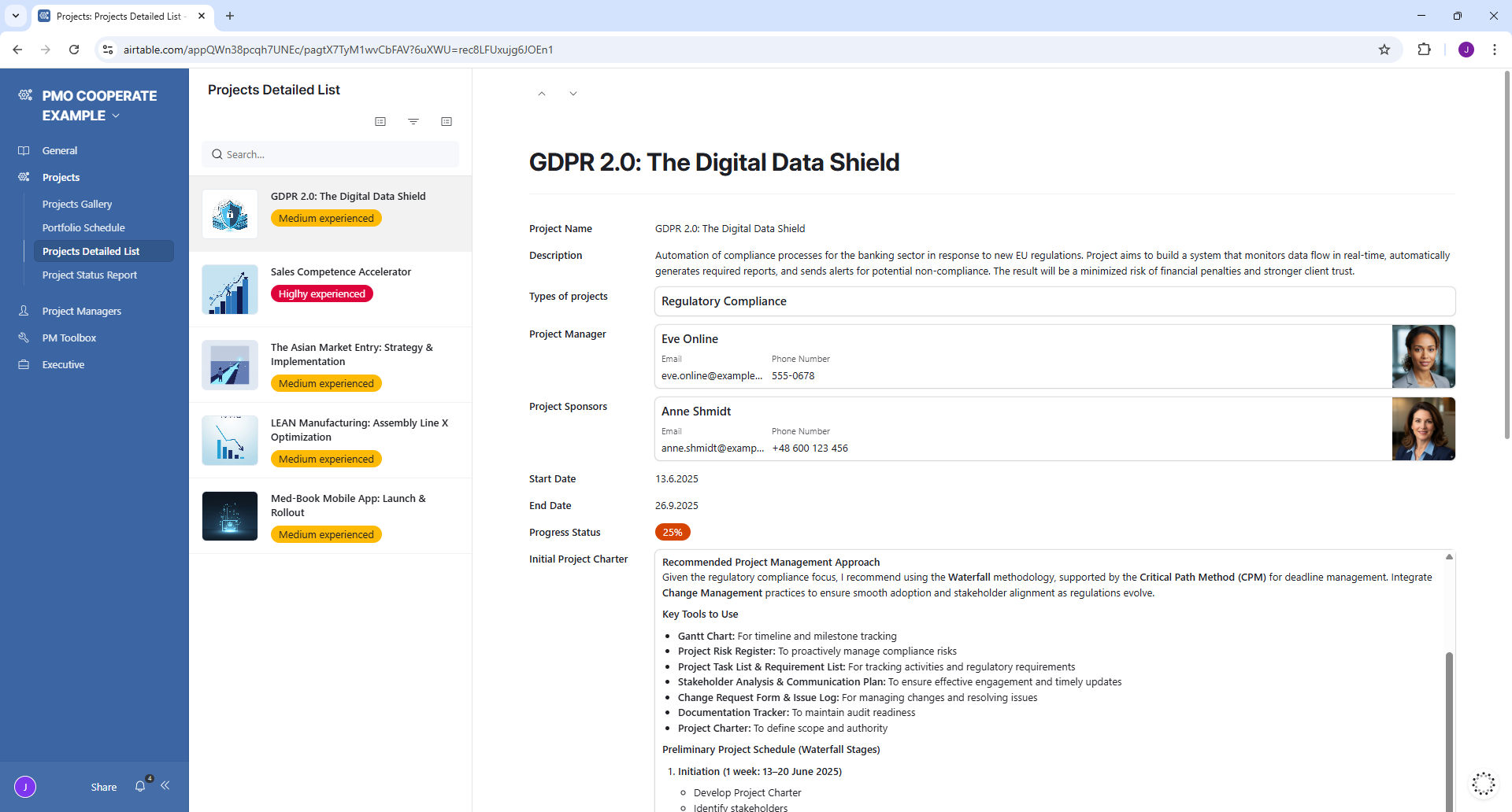 - AI assistant will help to create a project charter and monitor the progress in a friendly way.